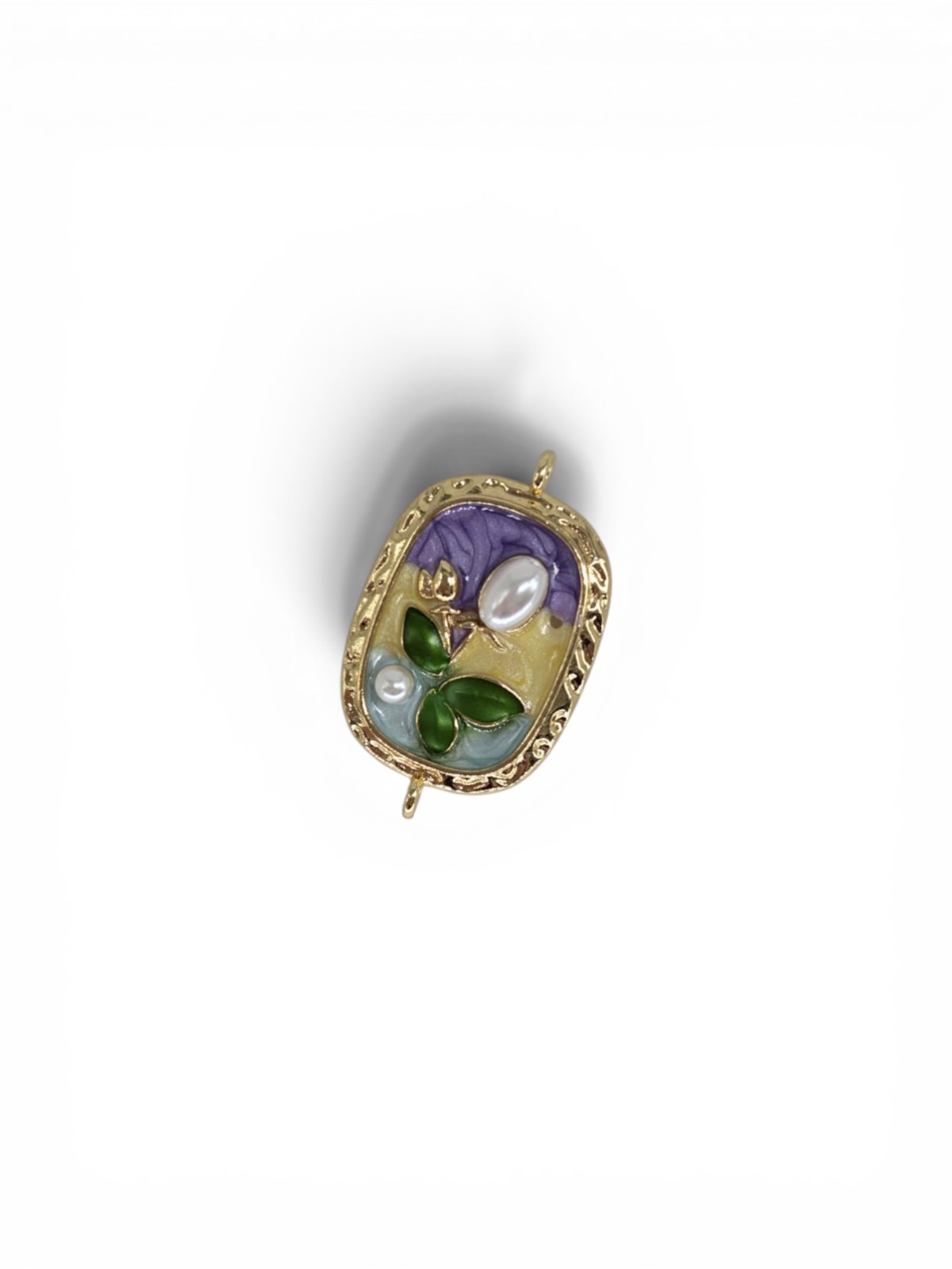 Entremeio Flor Com Pérola Esmaltado Retangular.